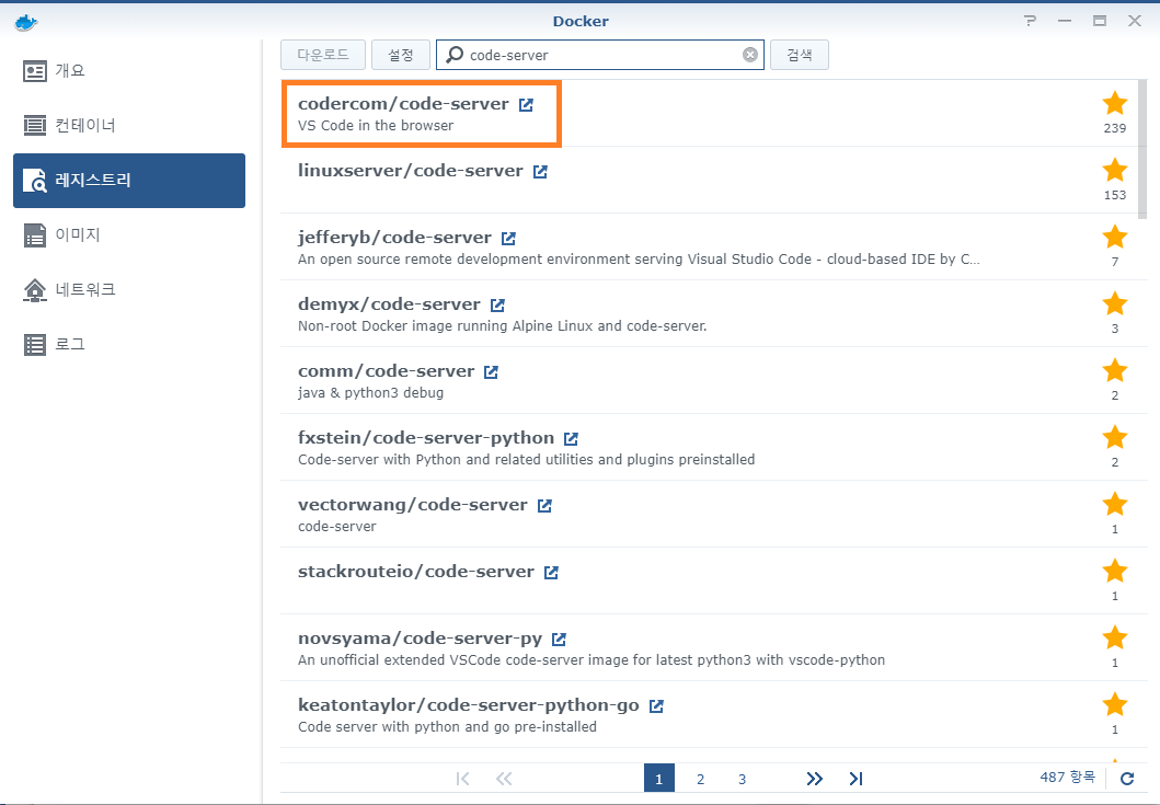 Synology Nas에 Docker 패키지가 설치 되어있는 상황에 진행합니다.
