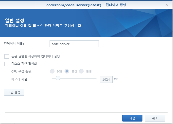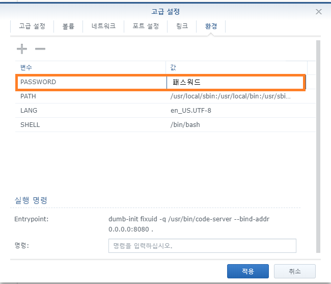최종 설치 마무리 후 접속은 http://본인나스IP:설정한 포트로 접속하시면 됩니다.