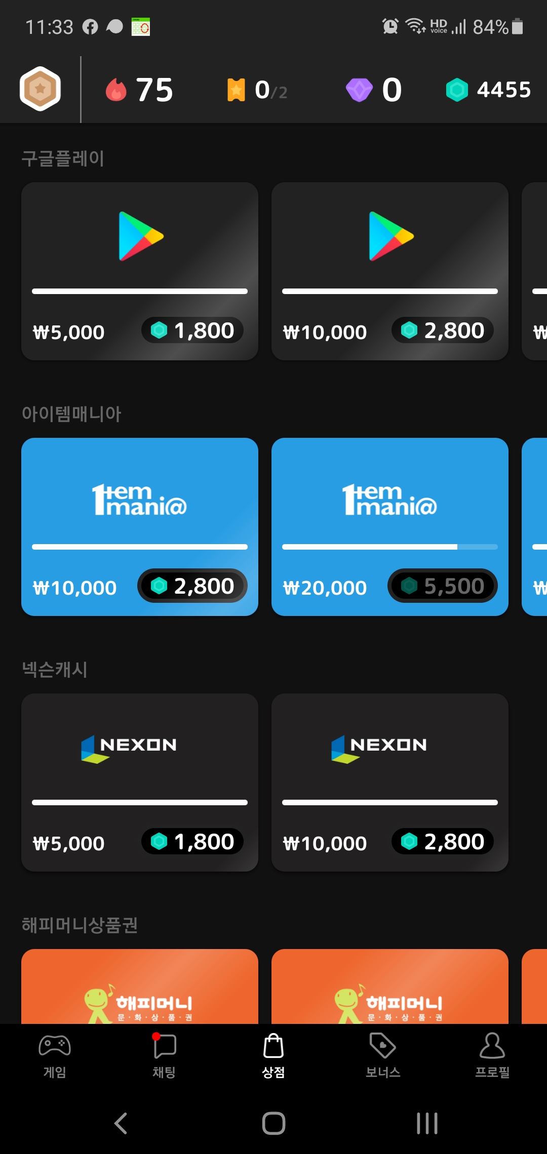 문화상품권, 구글플레이 카드, 아이템 매니아